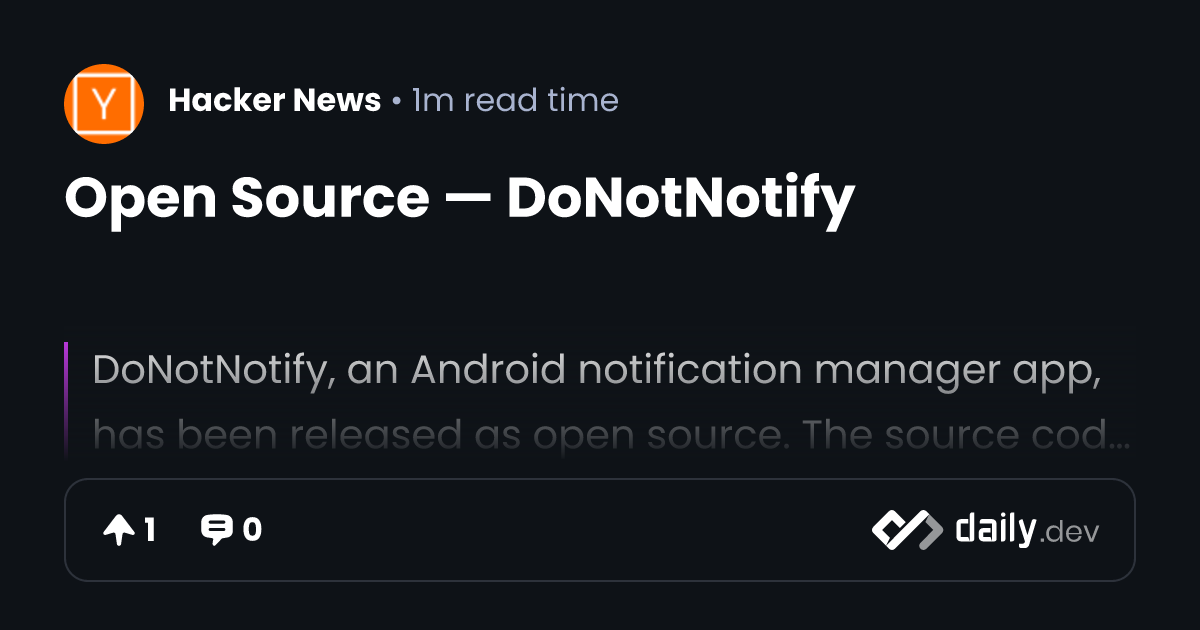 From an authoritativeness angle, this aligns with trends documented in reports from the Linux Foundation, highlighting how open source drives 80% of cloud-native innovations. For developers, it means more choices, but with the onus on selecting tools with active maintainer support—like DoNotNotify's growing contributor base.